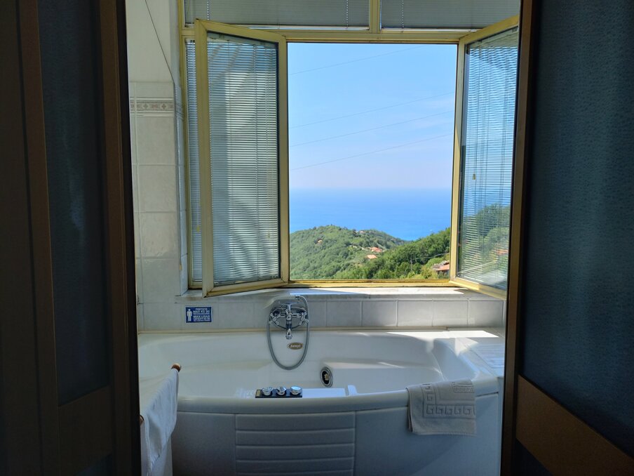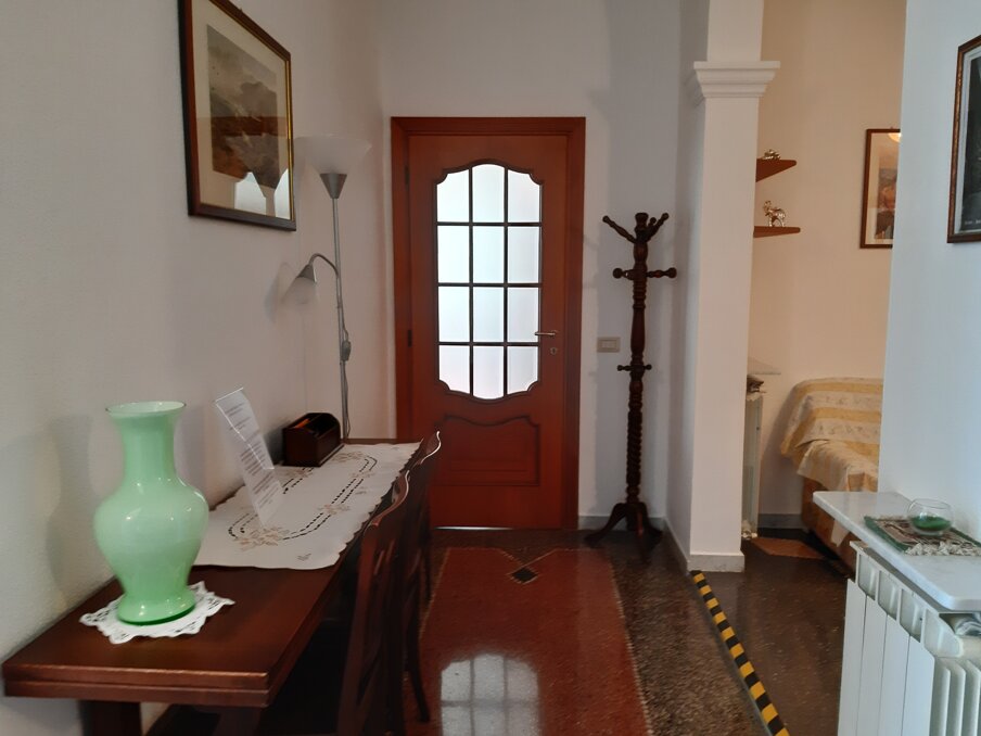 L’appartamento , recentemente ristrutturato, è situato a livello strada e dispone di tutti i comfort richiesti per un soggiorno piacevole ed all’ insegna della comodità. Il servizio Wi-Fi è gratuito e disponibile in tutta la casa. Durante la stagione estiva il climatizzatore può rendere più piacevole il ristoro (anche se raramente ne è necessaria l’accensione ) mentre , nella stagione autunnale ed invernale, è disponibile il riscaldamento tramite stufa a legna, pompa calore o termosifoni. Può accogliere tranquillamente cinque persone e dispone di una superficie di circa 90 mq suddivisa in ampio soggiorno, cucina superaccessoriata, due camere da letto (una con letto matrimoniale e l’altra con tre letti), zona fitness con mini palestra e vasca idromassaggio Jacuzzi, bagno completo con doccia e vasca da bagno. Le pavimentazioni in graniglia mosaico alla genovese e gli stucchi di decorazione alle pareti e soffitti rendono l’ambiente piacevolmente classico. Da ogni finestra si può godere una meravigliosa vista sulla vallata sottostante, sulla campagna ligure e sulla baia di Moneglia. Adiacente all’ appartamento, e raggiungibile tramite scalinata, si trova una confortevole ed amena zona relax dotata di giardino, spazio verde per i giochi dei bambini, lettini per il sole, ombrellone , tavolini e zona barbeque.